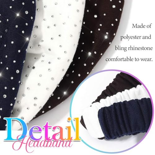 CAKURE Wide Rhinestone Headbands Sparkly African Head Wraps Bling Head Scarf Motorcycle hair accessories Women (Pack of 3)