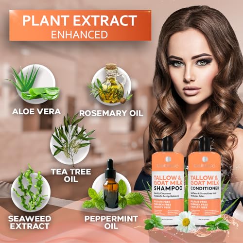 Beef Tallow Shampoo and Conditioner Set with Goat Milk - Sulfate Free Moisture for Women and Men - For Dry, Itchy Scalp - Hydrating, Thickening, Volume Care for Thinning Hair - 16.9 Fl Oz (Pack of 2)