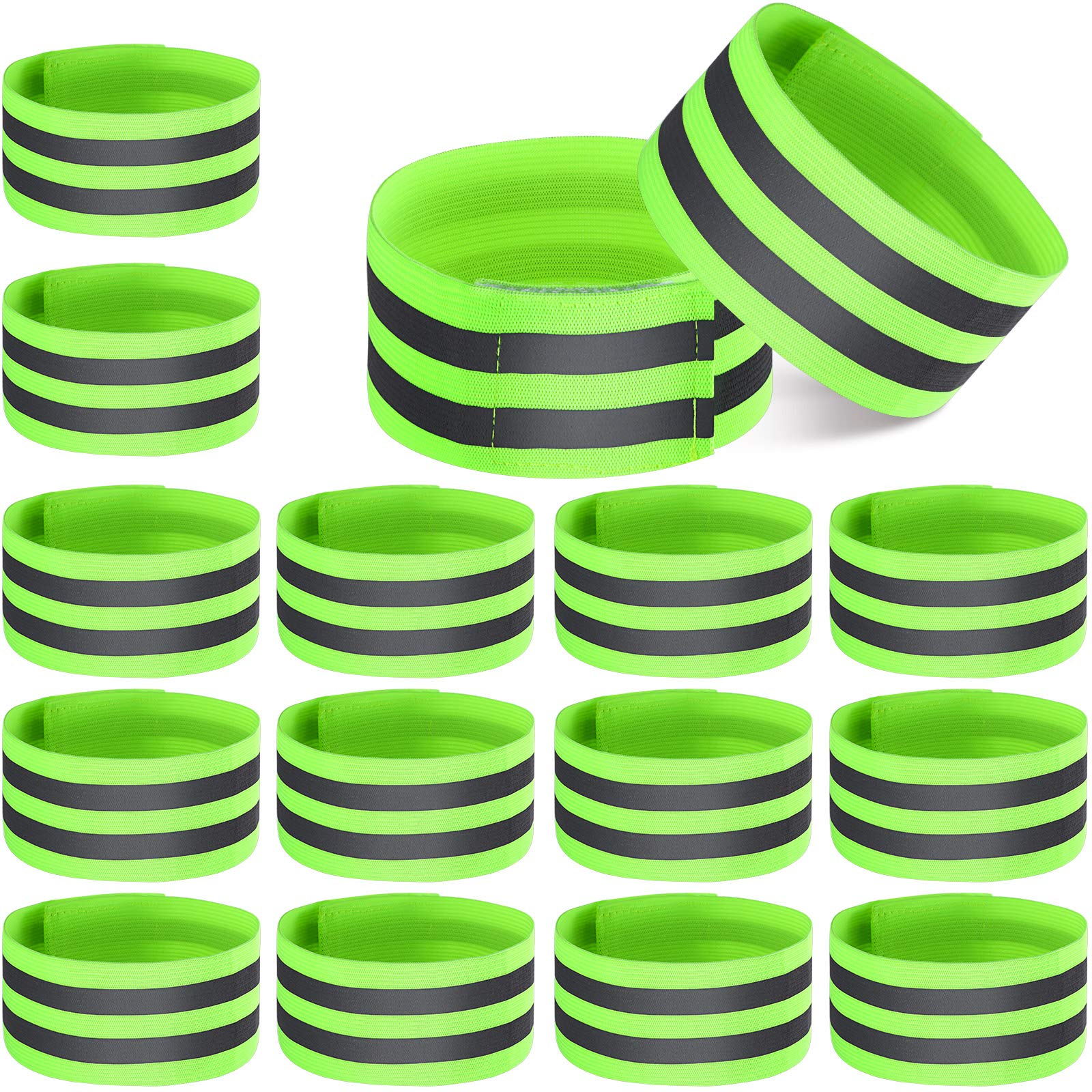 16 Pieces Reflective Bands Reflector Bands for Wrist, Arm, Ankle, Leg, High Visibility Reflective Gear Safety Reflector Tape Straps for Night Walking, Cycling and Running (Green)