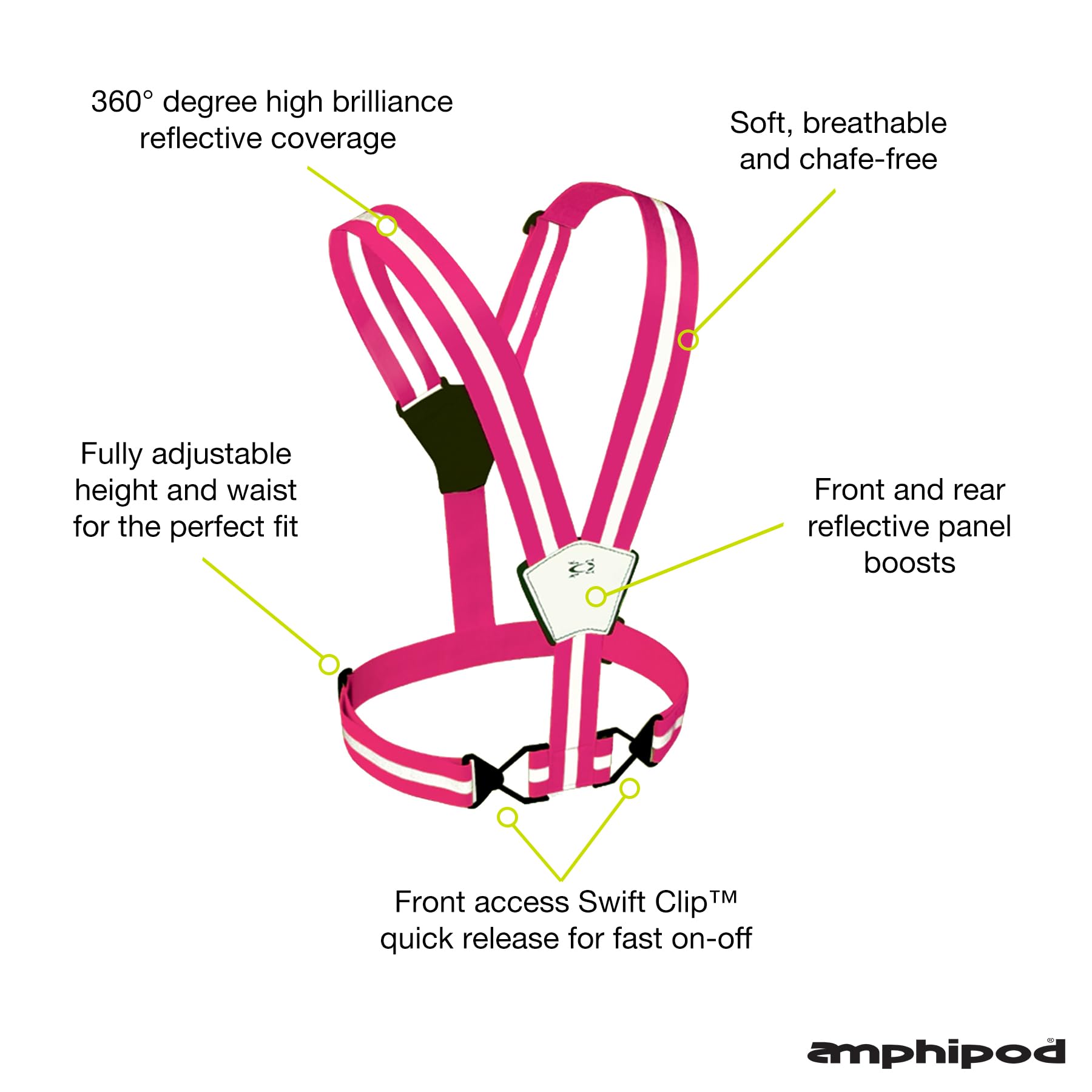 Amphipod Xinglet Vest, Outdoor High Visibility Reflective Straps Safety Vest for Road Running, Jogging & Walking - Bright Pink - OS