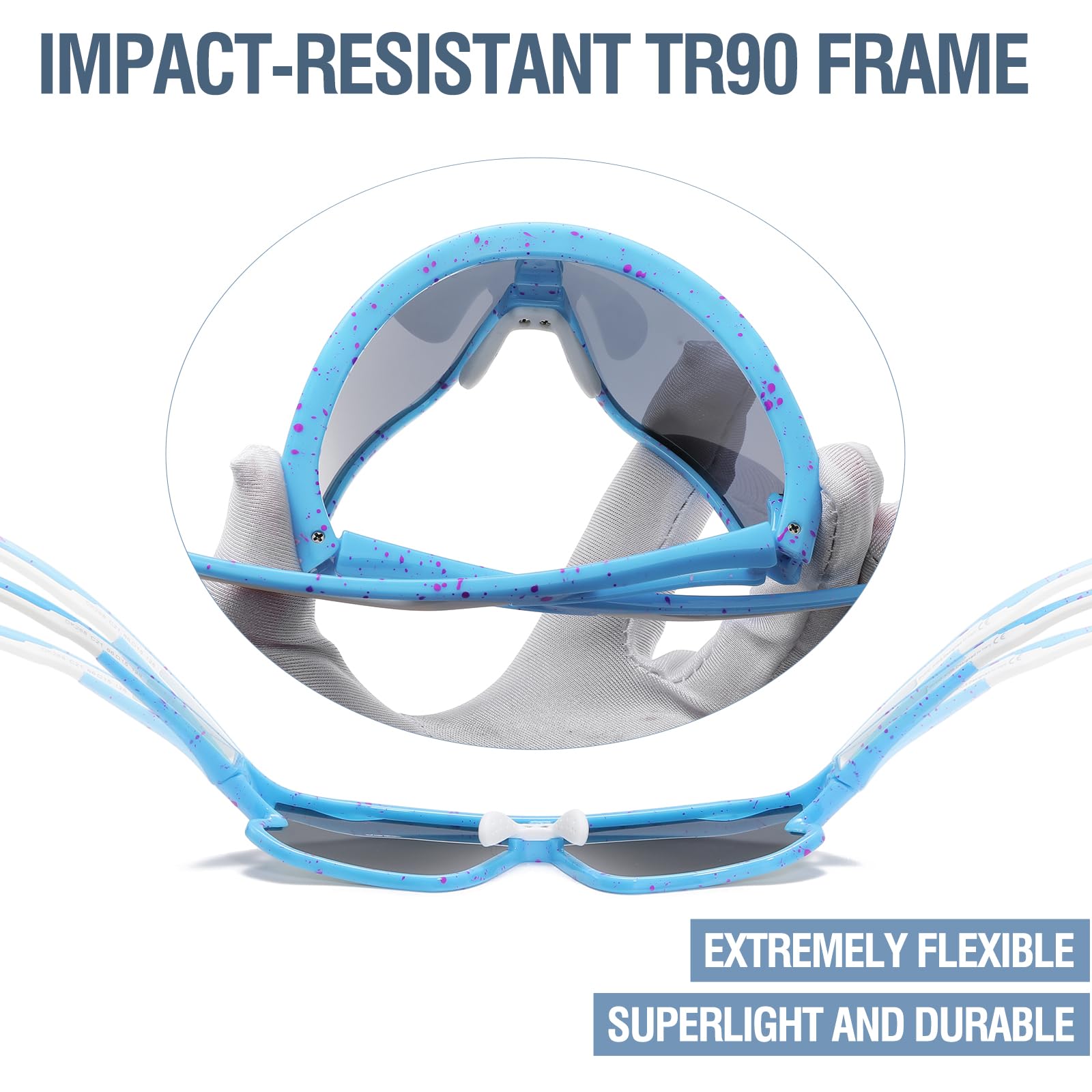 - 【ULTRA-LIGHTWEIGHT FRAME DESIGN】- Fashion kids sunglasses are so lightweight. The whole sunglasses weigh only 22g as a gift accompany children's childhood. Perfect warp-around the kids' eyes, protect the eyesight of kids on the process of growth. Every sunglasses equip with woven zippered pocket,it's a good idea to carry around.