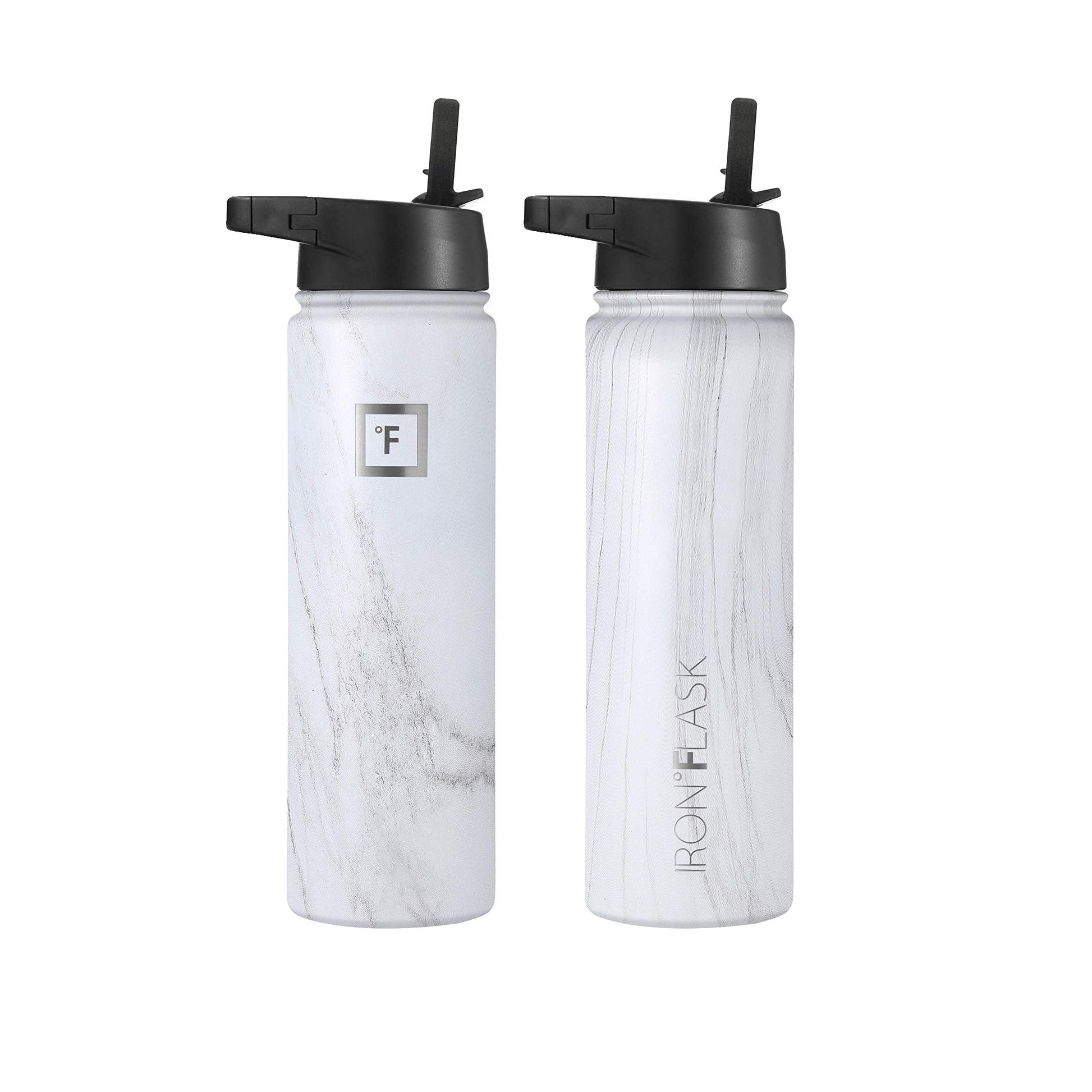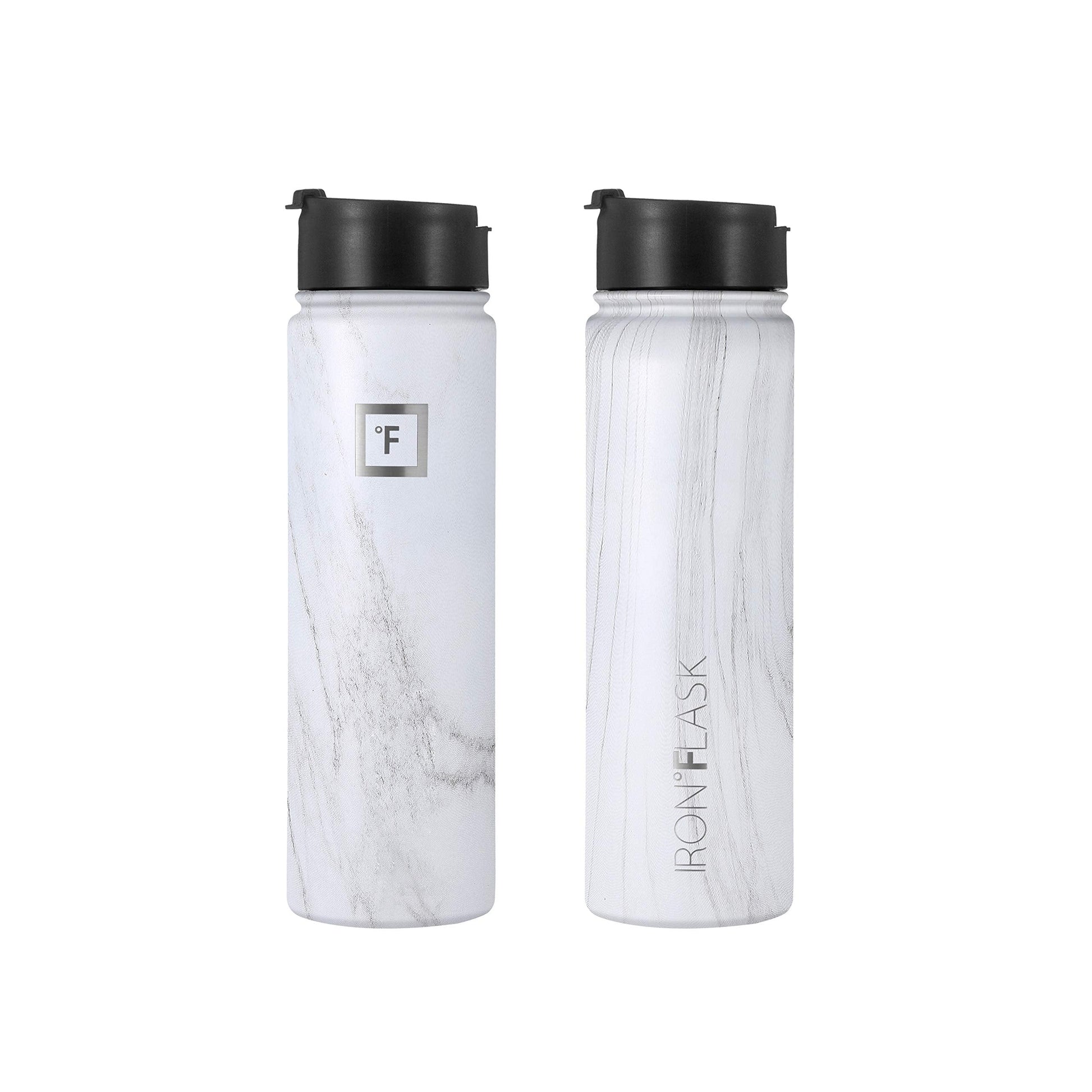 IRON °FLASK Camping & Hiking Hydration Flask, Wide Mouth, 3 Straw Lids, Stainless Steel Outdoor Water Bottle, Double Walled, Insulated Thermos, Metal Canteen - Carrara Marble, 22 Oz