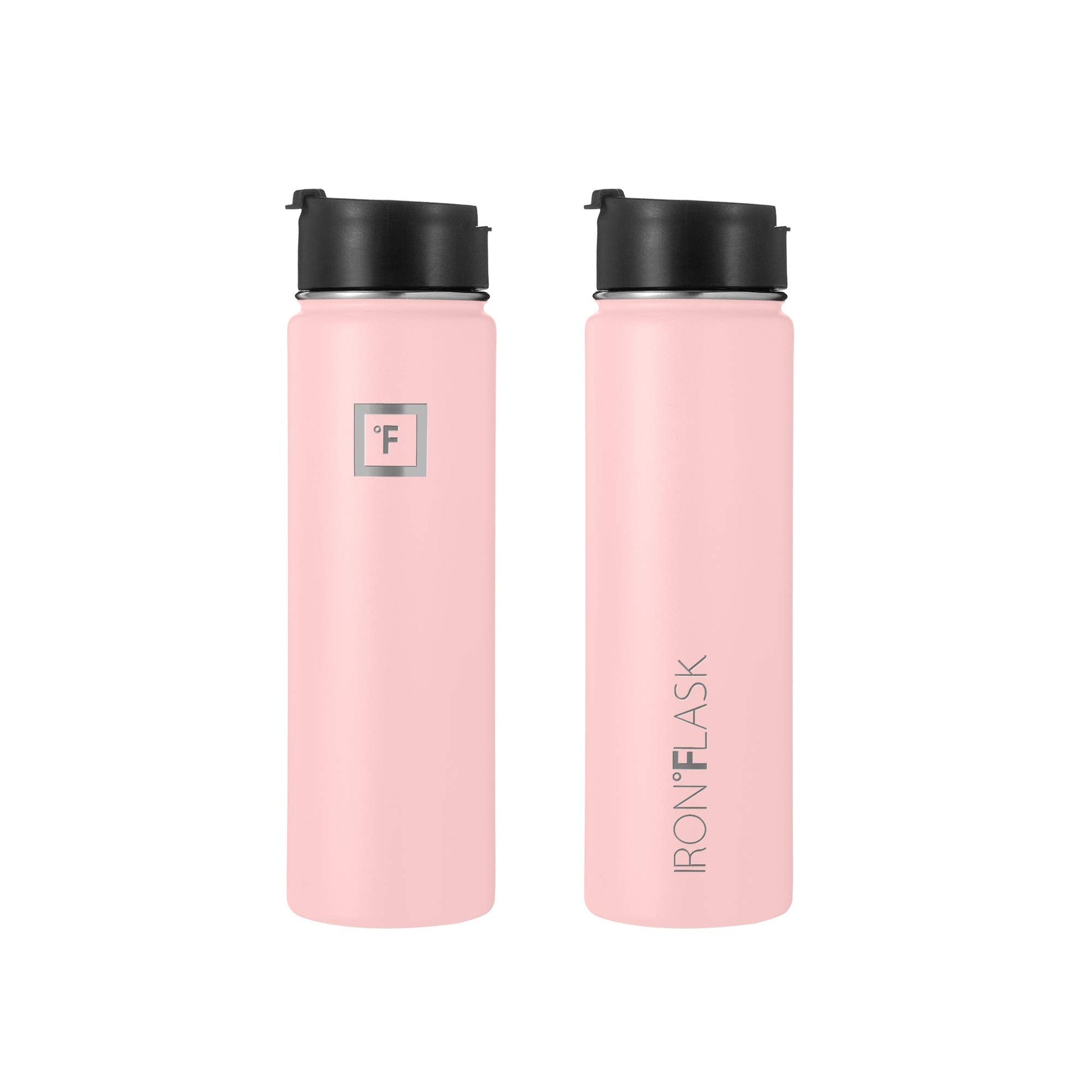 IRON °FLASK Camping & Hiking Hydration Flask, Wide Mouth, 3 Straw Lids, Stainless Steel Outdoor Water Bottle, Double Walled, Insulated Thermos, Metal Canteen - Rose, 22 Oz