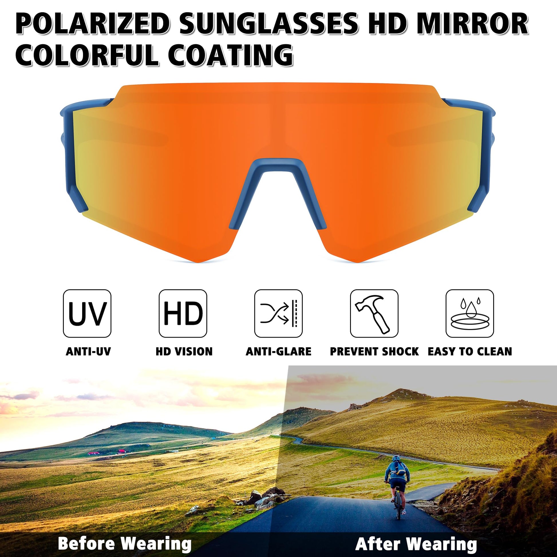 - TAC HD POLARIZED LENS - 99% UV400 protection coating, blocks 99% harmful UVA & UVB Rays. Restore true color, eliminate reflected light and scattered light,make the scenery more clear and soft and protect eyes perfectly.Polycarbonate lens are impact, scratch resistant and unbreakable.
