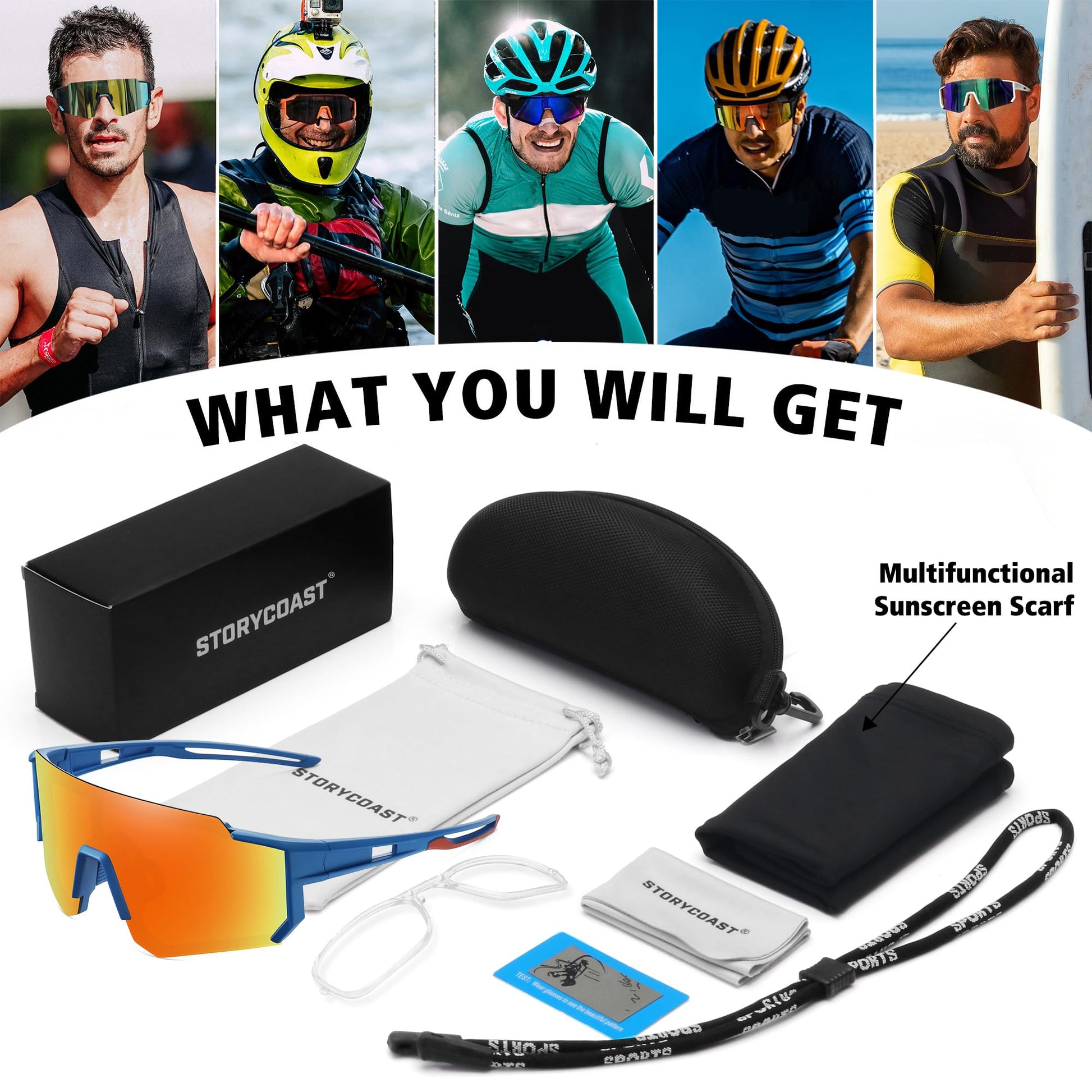 - STORYCOAST FRAME TECHNOLOGY- the frame is lightweight, very flexible, heat-resistant and UV-resistant. The sturdy and lightweight frame with non-slip nose pads and improves wearing comfort. Suitable for all face shapes, suitable for all kinds of outdoor sports.
